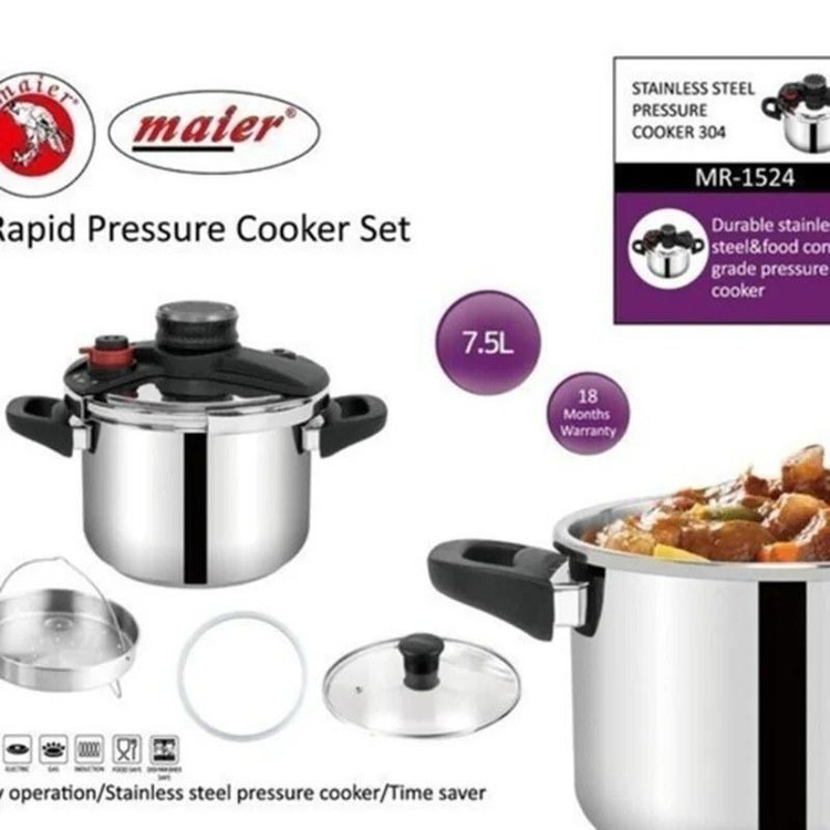 زودپز 7.5 لیتر تمام استیل در کلیپی جدید حرفه ای مایر مدل 1524 دارای کارایی زودپز و بخار پز و واشر- قابلیت شستشو در ماشین ظرفشویی.