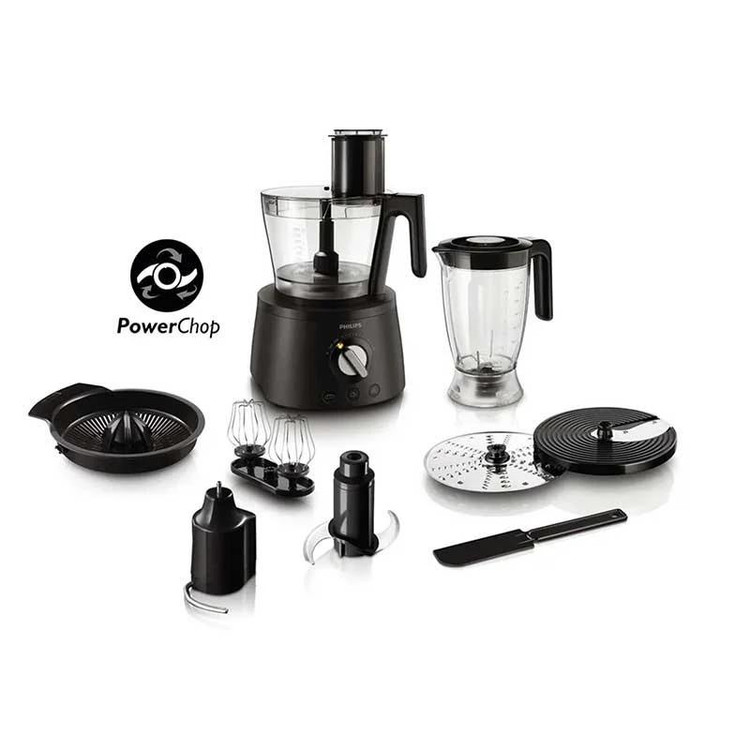 مجهز به فن آوری Powerchop که امکان خردکردن مواد نرم و سخت را فراهم می سازد- کلیدهای از پیش تنظیم شده برای عملکرد خاص: خردکردن یخ- زدن خمیر و همزدن کرم- همزن دوقلو با کارایی بیشتر- دارای یک عدد دیسک چیپس ساز که از 1 تا 7 میلی متر قابل تنظیم می باشد- میزان صدا:83 دسی بل