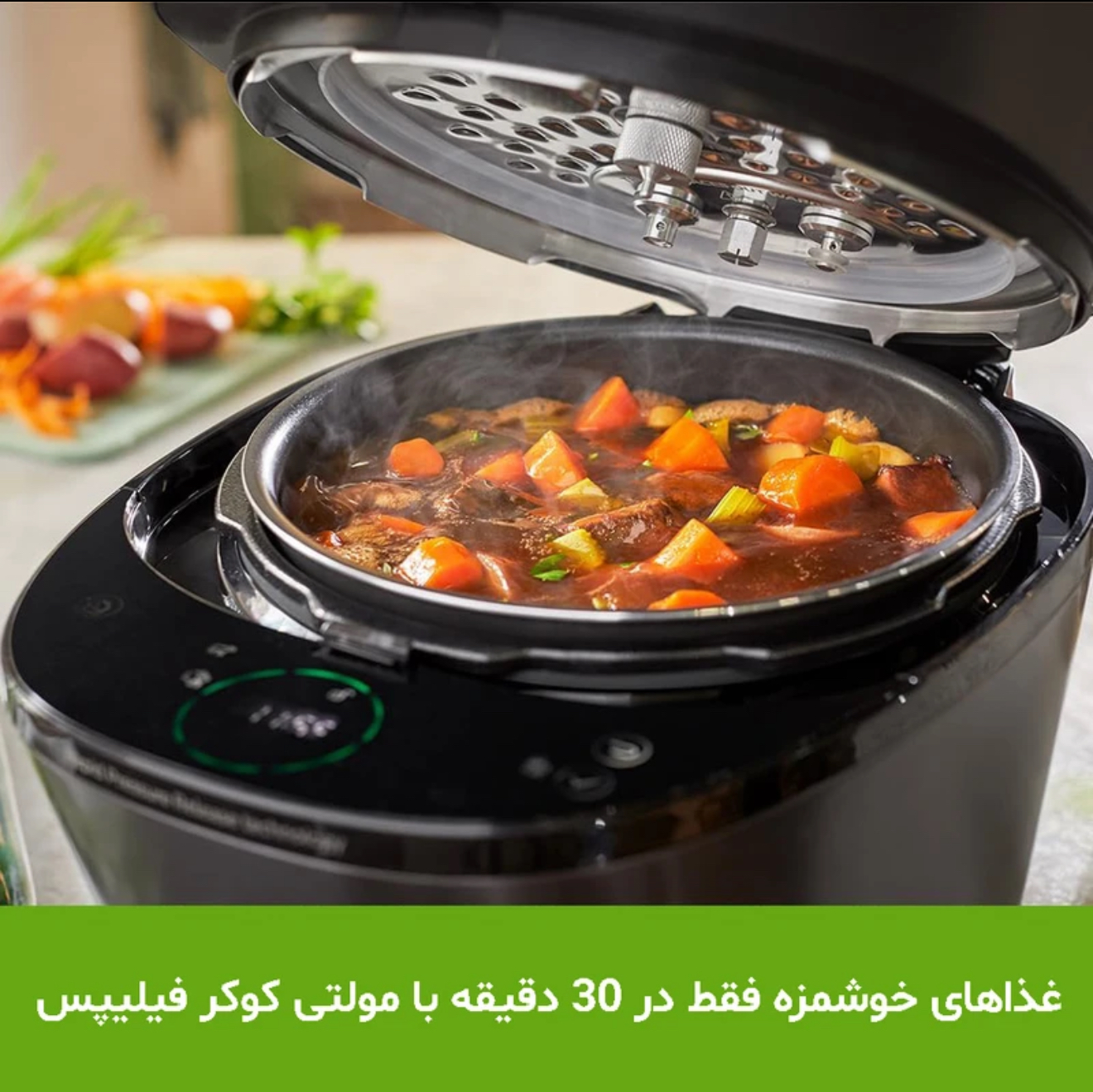 به جرات می توان گفت که مولتی کوکر فیلیپس مدل HD2151 یکی از پیشرفته ترین و جدید ترین محصولات صنعت آشپزی می باشد. این وسیله به شکل پلوپز طراحی شده است، و دارای کاربرد های متنوعی است. شما از مولتی کوکر فیلیپس مدل HD2151 می توانید به عنوان پلوپز، بخارپز، آرام پز،زودپز و.... استفاده کنید. قابلیت های بسیار زیاد مولتی کوکر فیلیپس مدل HD2151 باعث شده است تا ارزش خرید آن افزایش پیدا کند. مولتی کوکر فیلیپس مدل HD2151 قادر است بیش از 50 نوع غذا را برای شما تهیه نماید و دارای منوی گسترده ای می باشد. بر روی مولتی کوکر فیلیپس مدل HD2151 صفحه نمایشی وجود دارد که کاربر امکان تعامل با آن را دارد. مولتی کوکر فیلیپس امکان انتخاب نوع برنامه پخت و پز، و استفاده از تایمر را برای راحتی کاربران فراهم کرده است. مولتی کوکر مدل HD2151 فیلیپس دارای توان مصرفی 1090 وات می باشد. مولتی کوکر فیلیپس مدل HD2151 دارای 35 برنامه غذایی متنوع است، که در هر کدام دما و سطح فشار از قبل تنظیم شده است. و شما می توانید متناسب با هر نوع ماده غذایی؛ برنامه مخصوص خودش را انتخاب کنید