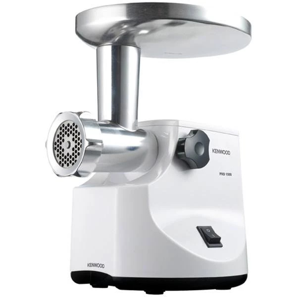 3 پنجره برای چرخ کردن گوشت - گلویی فلزی از جنس آلیاژ پرداخت شده به همراه گوشتکوب - دارای تیغه توری مشبک در سه اندازه ریز (3 میلیمتر)، متوسط (5.4 میلیمتر)، درشت (8 میلیمتر)